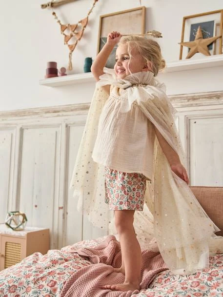 Un joli duo cape + baguette qui transformera votre enfant en princesse en un claquement de doigts ! Une cape en tulle parsemée de paillettes avec un joli col pour être la plus belle. Et une baguette magique pourvue d’une étoile pour ajouter de la magie à leurs histoires.
