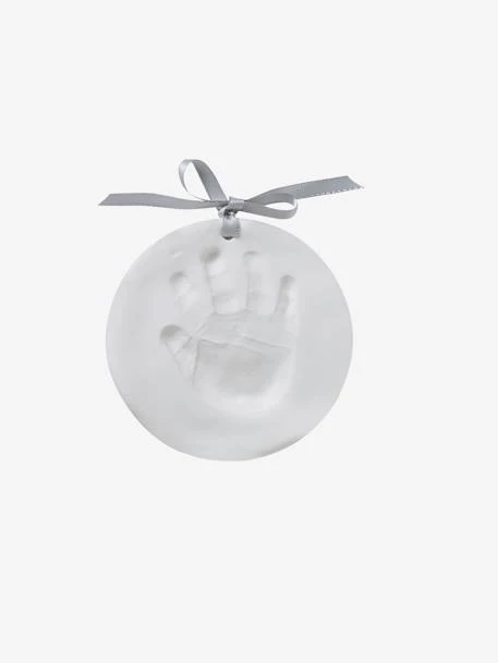 - Il suffit de pétrir l’argile, l’étaler avec le rouleau, prendre l’empreinte de la main ou du pied, placer l’anneau pour réaliser un cercle parfait, faire un trou pour y passer le ruban une fois l’argile sèche (48 h)