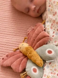 - S’attache sur une arche d’éveil, les barreaux du parc, la poussette, l’appui-tête de la voiture… grâce à ses anneaux